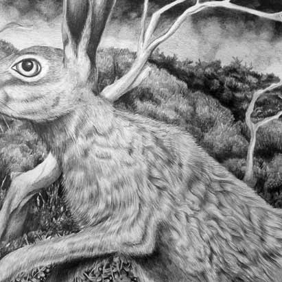 The girls are reading a story but whether the hare and dog are real or part of that story is open to debate.