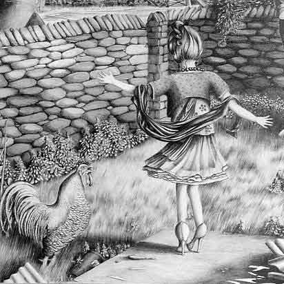 This drawing is about being trapped and the hopelessness of being a young, single mother in a remote place with no transport, money or prospects.